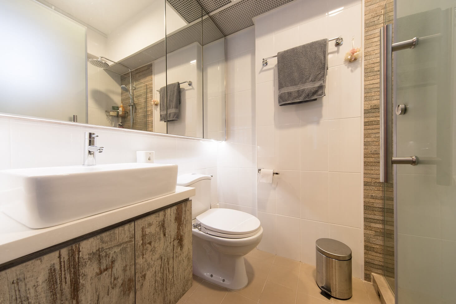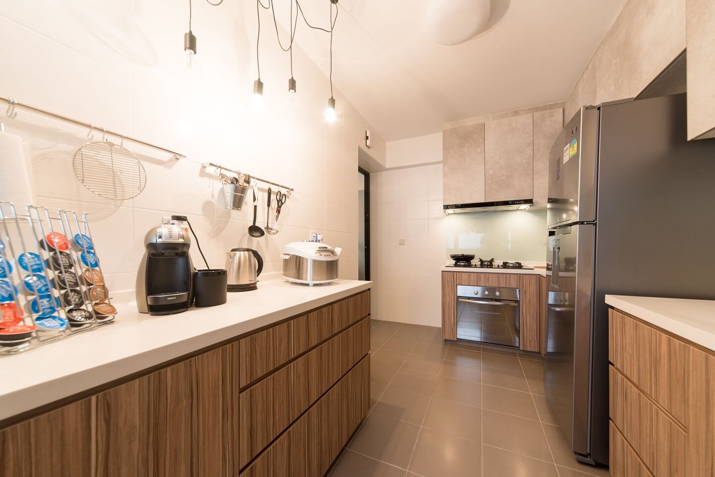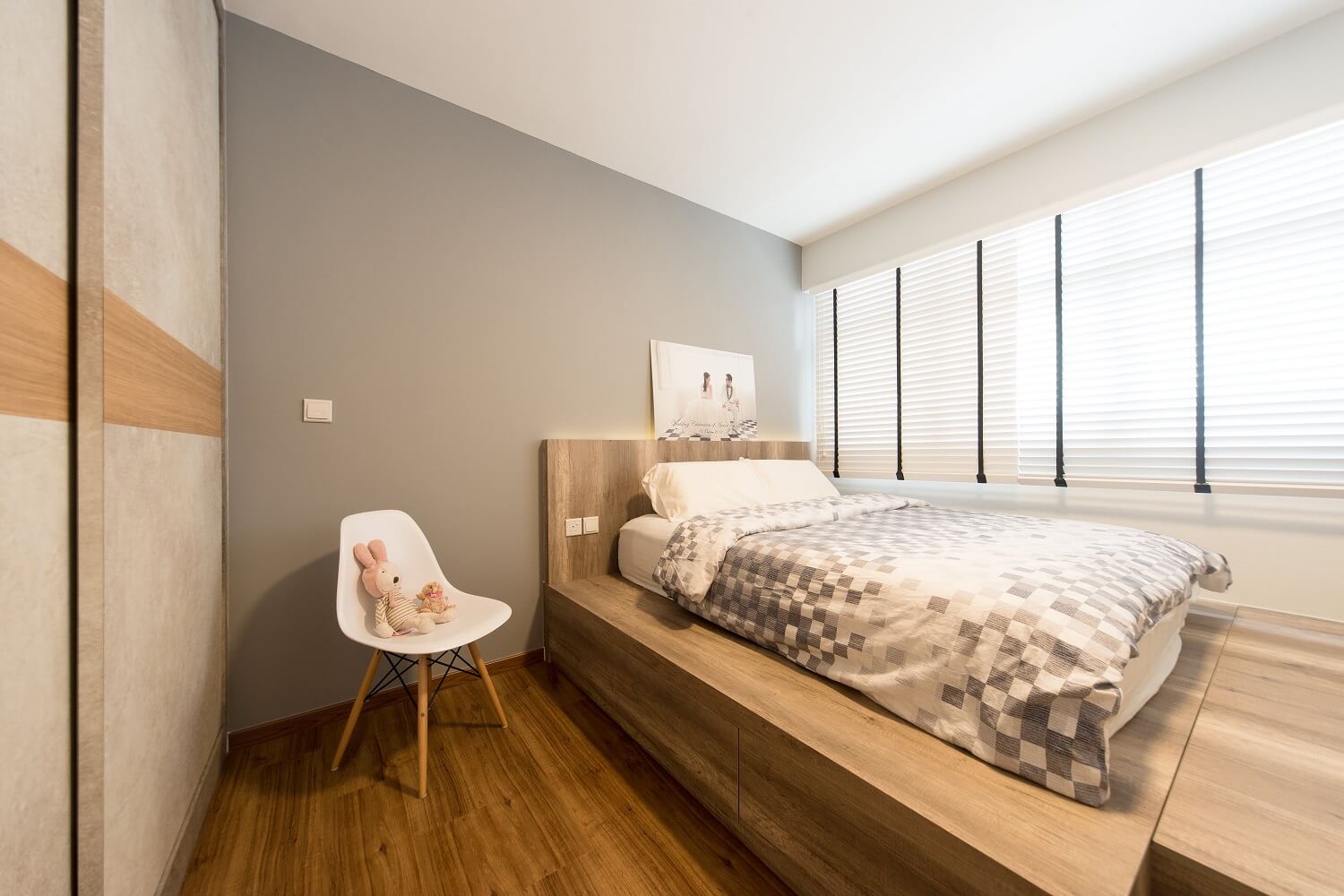 Ruangan bertema scandinavian yang karakternya diperkuat dengan pencahayaan yang tepat